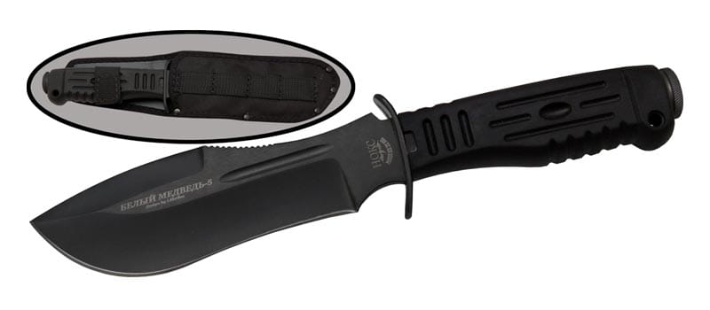 "Biały niedźwiedź" należy do najpopularniejszych modeli noży firmy NOKS. Pierwotnie powstał na zamówienie miejskich służb ratowniczych, którym potrzebny był uniwersalny nóż do pracy przy odgruzowywaniu i poszukiwaniu ofiar wśród ruin. Nóż, przy niewielkich rozmiarach, miał być maksymalnie wytrzymały, umożliwiać cięcie, rąbanie a także wykorzystanie w charakterze dźwigni i łopatki. Później powstał wariant survivalowy ze skrytką w rękojeści. Prezentowany tutaj model "Białego niedźwiedzia" stanowi najnowszą wariację tego noża odróżniającą się obecnością gardy i gumowej rękojeści charakterystycznej dla ciężkich noży z linii "Wzmach".