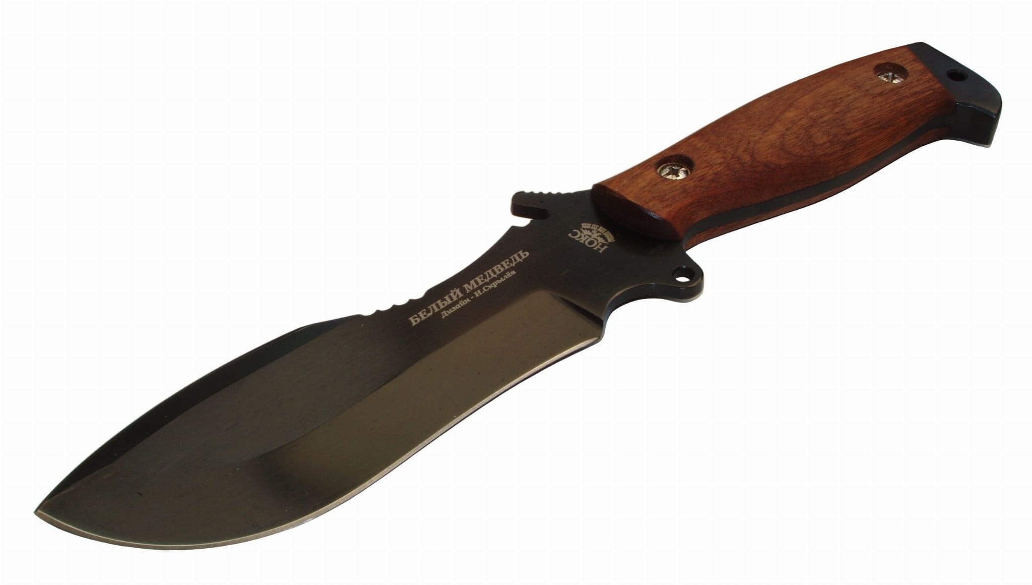 "Biały niedźwiedź" należy do najpopularniejszych modeli noży firmy NOKS. Pierwotnie powstał na zamówienie miejskich służb ratowniczych, którym potrzebny był uniwersalny nóż do pracy przy odgruzowywaniu i poszukiwaniu ofiar wśród ruin. Nóż, przy niewielkich rozmiarach, miał być maksymalnie wytrzymały, umożliwiać cięcie, rąbanie a także wykorzystanie w charakterze dźwigni i łopatki. Później powstał wariant survivalowy ze skrytką w rękojeści. Prezentowany tutaj model "Białego niedźwiedzia" z drewnianymi okładzinami rękojeści jest najpopularniejszym i najbardziej klasycznym wariantem tego noża. Istnieją również warianty z rękojeścią z elastronu i ze stali nierdzewnej z białą klingą.
