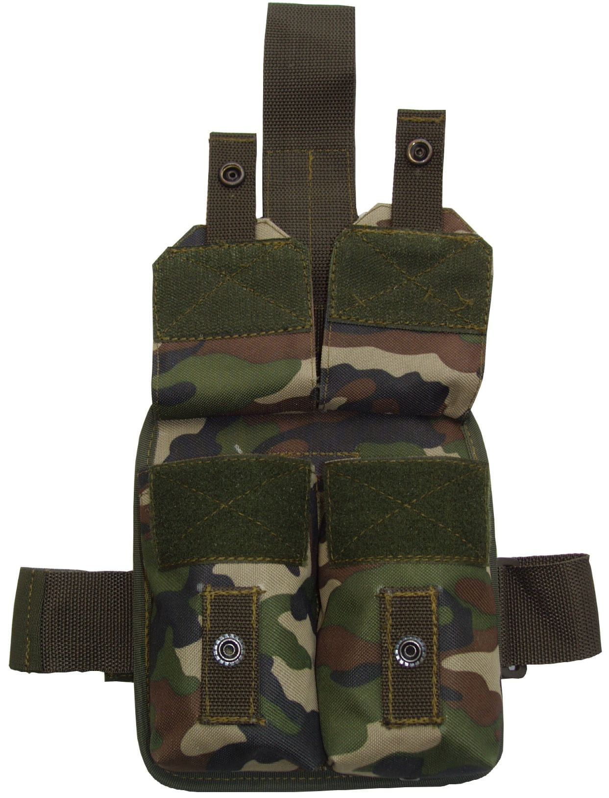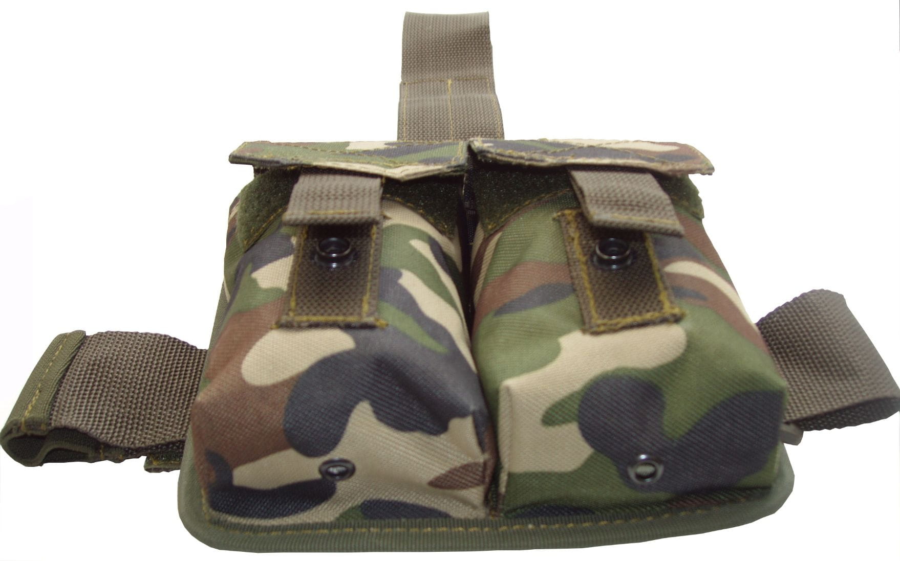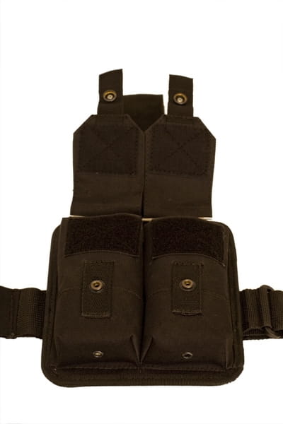 Kapronowa ładownica udowa na 2 magazynki (po 5 naboi) do karabinu śrutowego Sajga 12 (teoretycznie są to gładkolufowe strzelby śrutowe powstałe na bazie automatu Kałasznikowa, ale ich podobieństwo do swojego bojowego przodka sprawia że w Rosji są nazywane nie inaczej jak karabinami). Klapy przykrywające kieszenie zamykane są na rzep i dodatkowo na guzik zatrzaskowy. Ładownica ma regulowaną taśmę pionową mocującą do paska oraz taśmę na rzepie do mocowania wokół uda. Na dnie kieszeni otwory do ściekania wody.