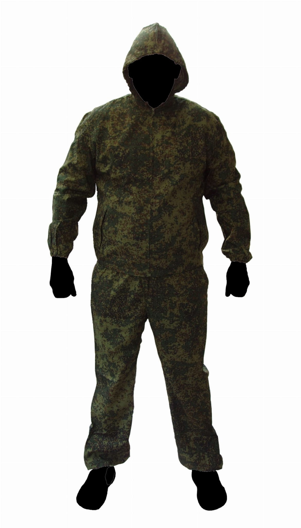 Lekki kostium maskujący składający się z bluzy z kapturem i spodni w kamuflażu cyfra RF zwanym także „piksel”. Skrót KLM oznacza Kostium Letni Maskujący (костьюм летний маскировочный). Góra rozpinana pośrodku, z zapięciem na zamek błyskawiczny. Dwie kieszenie z przodu kurtki, niezapinane na guziki. Na końcach rękawów gumki ściągające. Kaptur stały, nieodpinany.